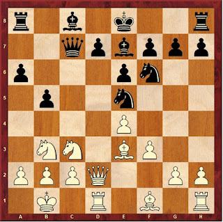 Note 2: Black can play 12..cd5 with the following 12... cxd5 13. Bg5 Be6 14. Bc4 14... Qc7 15. Bxd5 which is the best chance (