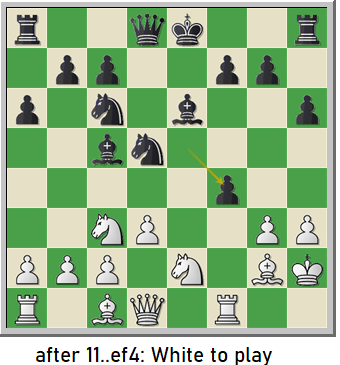 15. Qf2 e6 16. f6 Ng4 17. Qf3 Qxf6 18. Qxg4 Qd4+ 19. Rf2 f5 20. Qf3 fxe4 21.