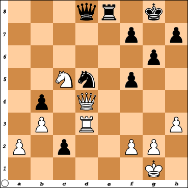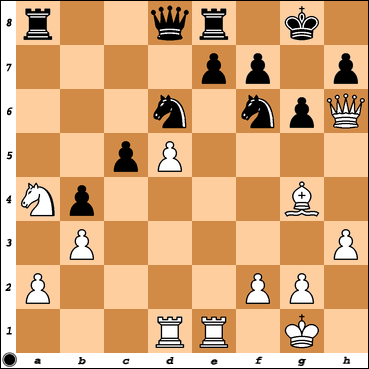 18..b5 19. cxb5 axb5 20. Rad1 b4 21. Na4 Black to play